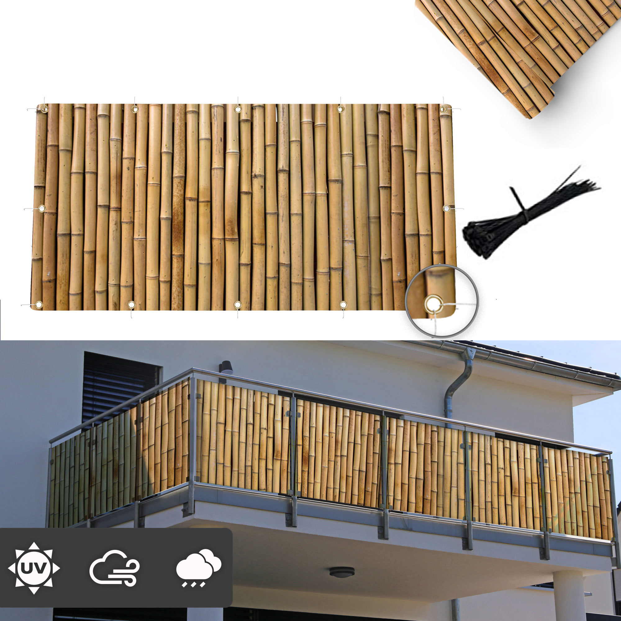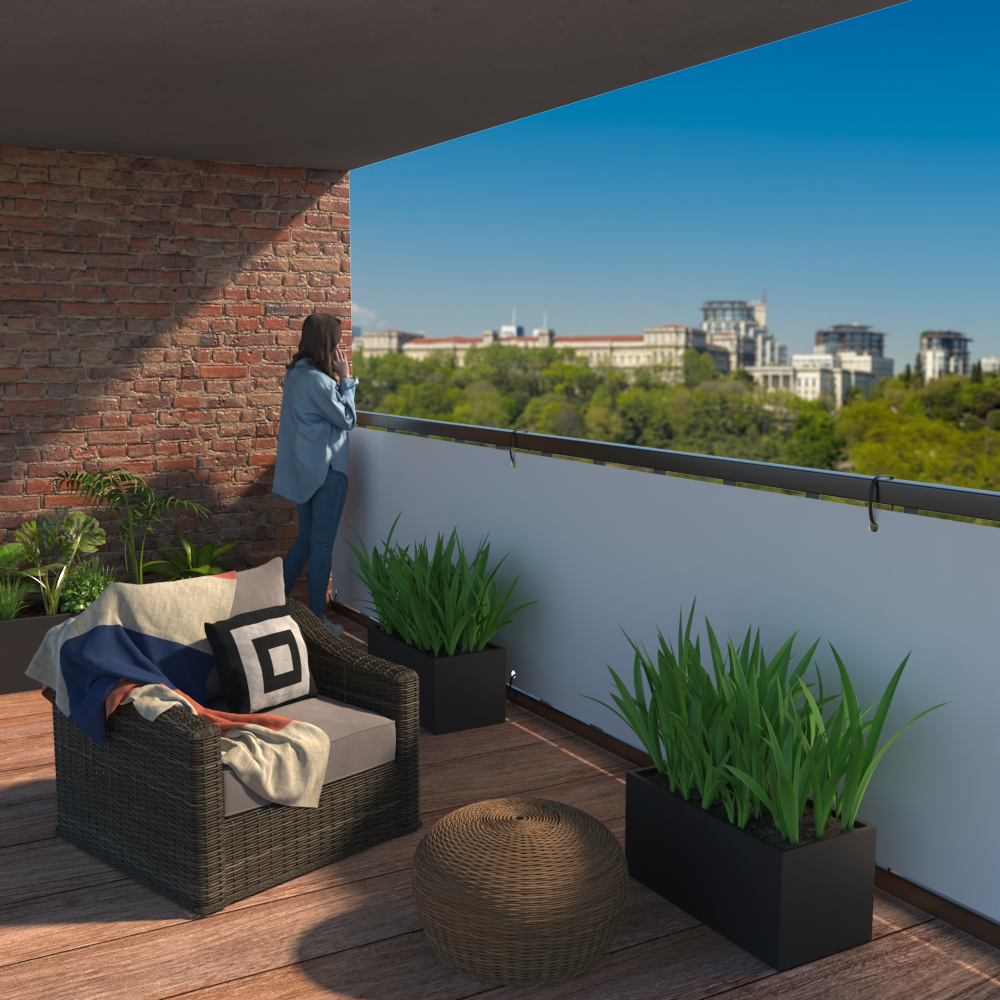 The high-quality material is UV and weather resistant and can withstand temperatures from -30°C to +60°C. Thanks to these properties, the balcony covering can remain on the balcony all year round. -