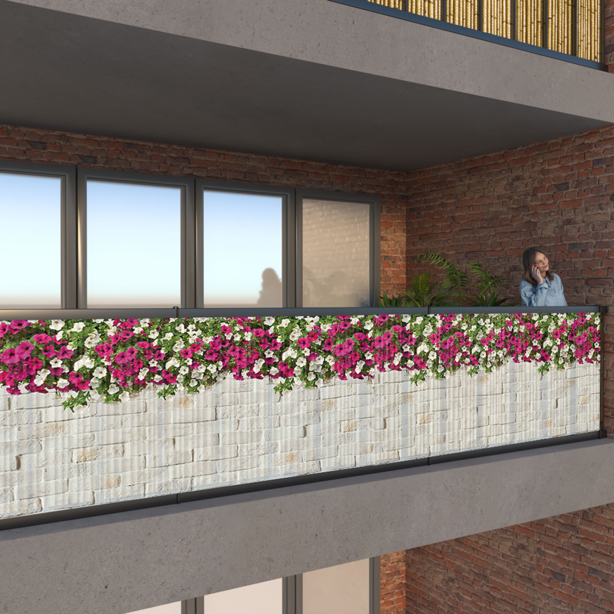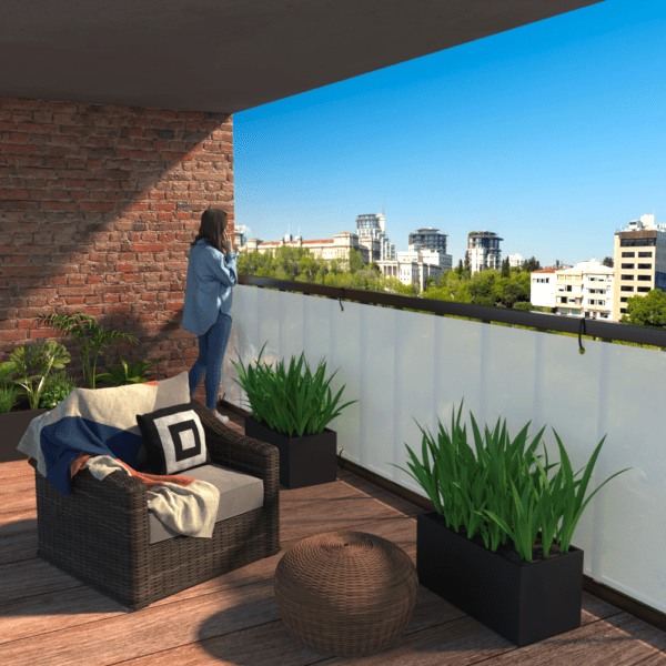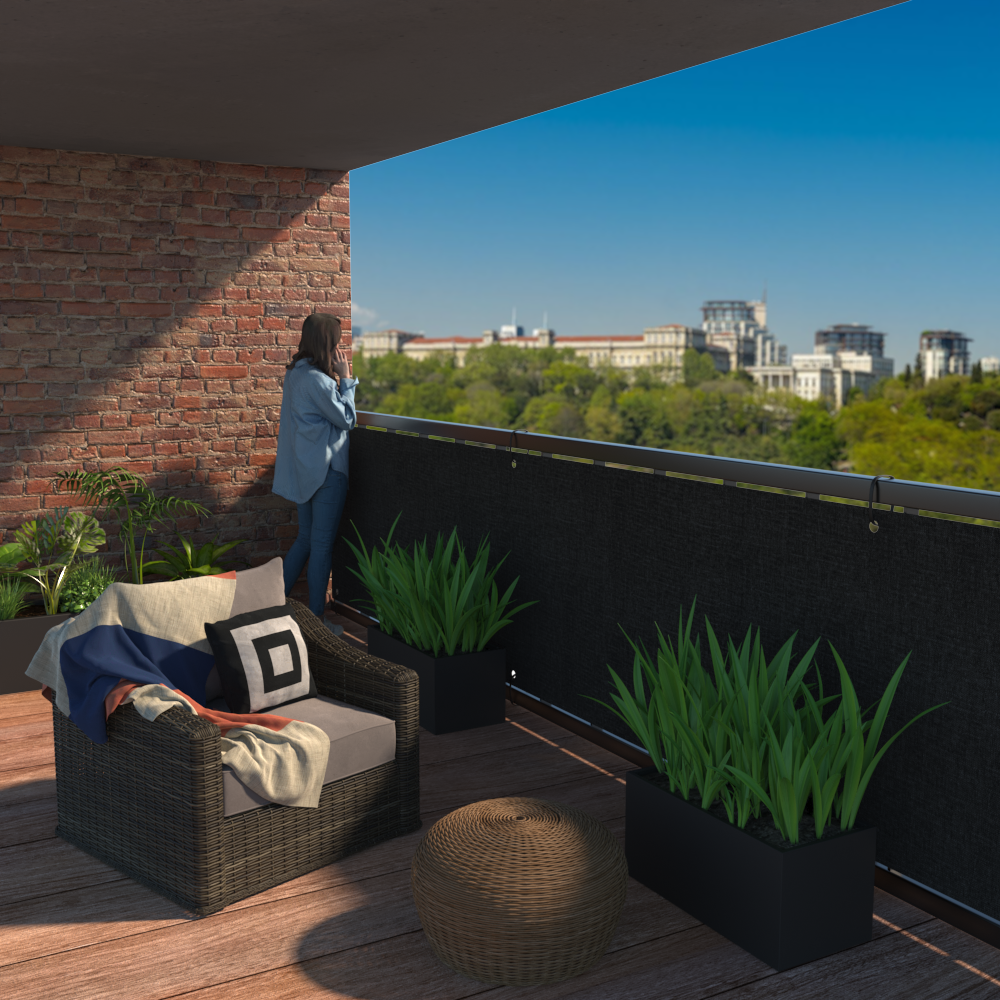 With our privacy screen, you can divert unwanted attention from your balcony. The attractive plastic fabric visually complements modern garden furniture and blends harmoniously into any environment.