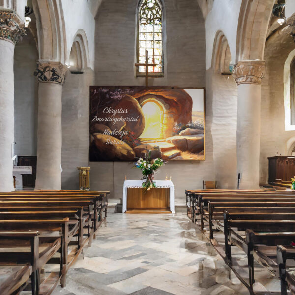Our banner is not just a product, it is an expression of faith and respect for Christian tradition. With it, you can create a unique atmosphere in your surroundings or church, while expressing your deep convictions and participating in important liturgical moments. We offer images with the lamb, for Corpus Christi, Lent and Easter, for Holy Communion, Advent, depicting the cross of the Lord, Golgotha, the tomb of the Lord, backgrounds for the tomb of Jesus Christ, showing the death on the cross and the ascension.