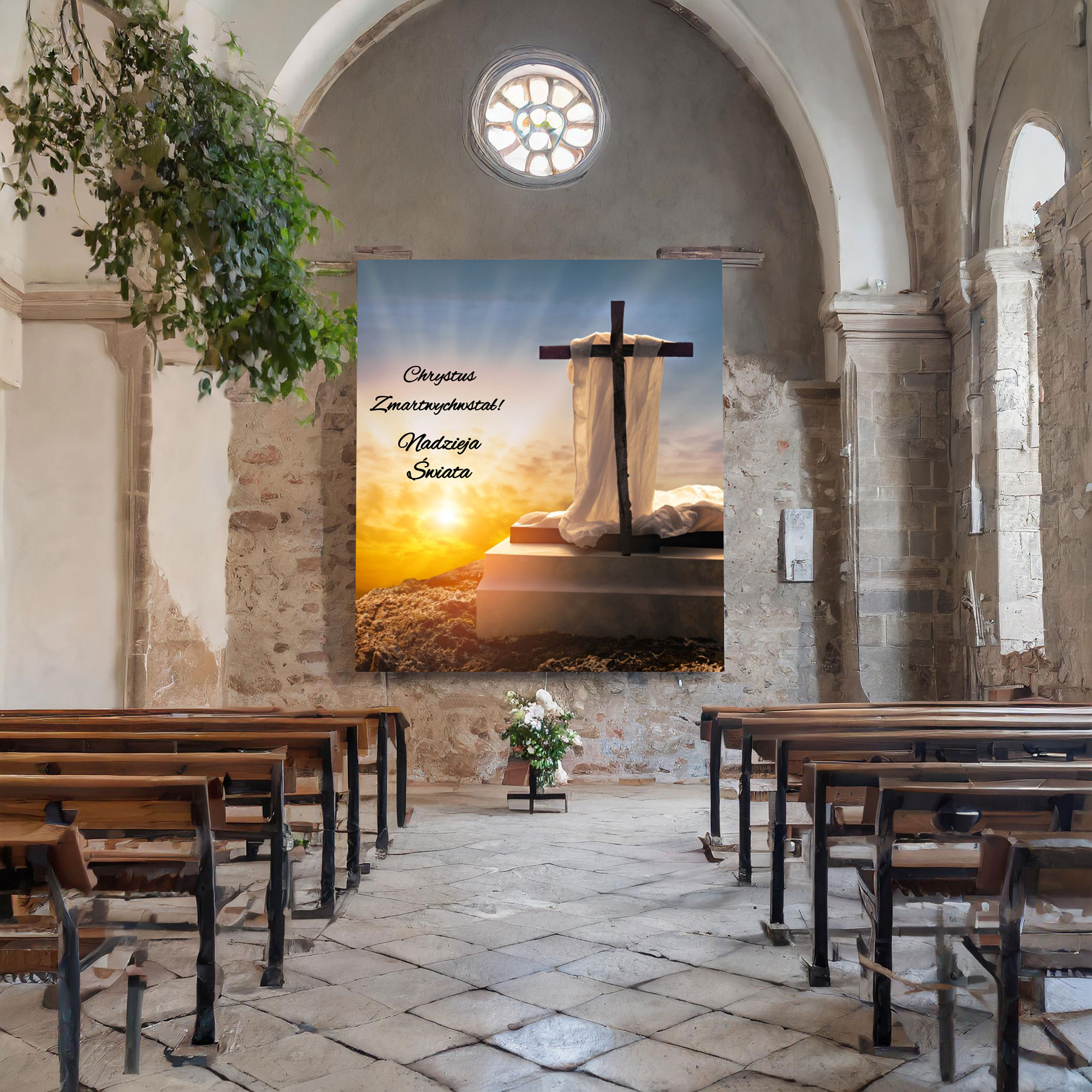 Our banner is not just a product, it is an expression of faith and respect for Christian tradition. With it, you can create a unique atmosphere in your surroundings or church, while expressing your deep convictions and participating in important liturgical moments. We offer images with the lamb, for Corpus Christi, Lent and Easter, for Holy Communion, Advent, depicting the cross of the Lord, Golgotha, the tomb of the Lord, backgrounds for the tomb of Jesus Christ, showing the death on the cross and the ascension.
