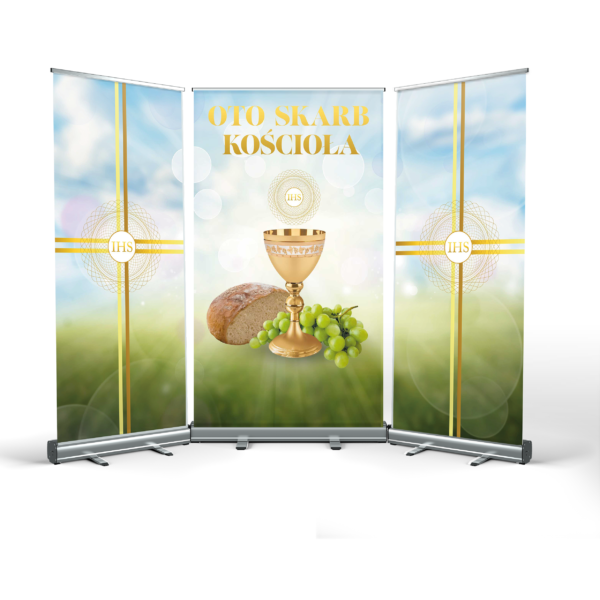 CORPUS CHRISTI ALTAR is a great idea for quickly arranging decorations in any location. The structure is made of durable cassettes, made entirely of anodised aluminium. The mast stabiliser guarantees a secure presentation of the print.