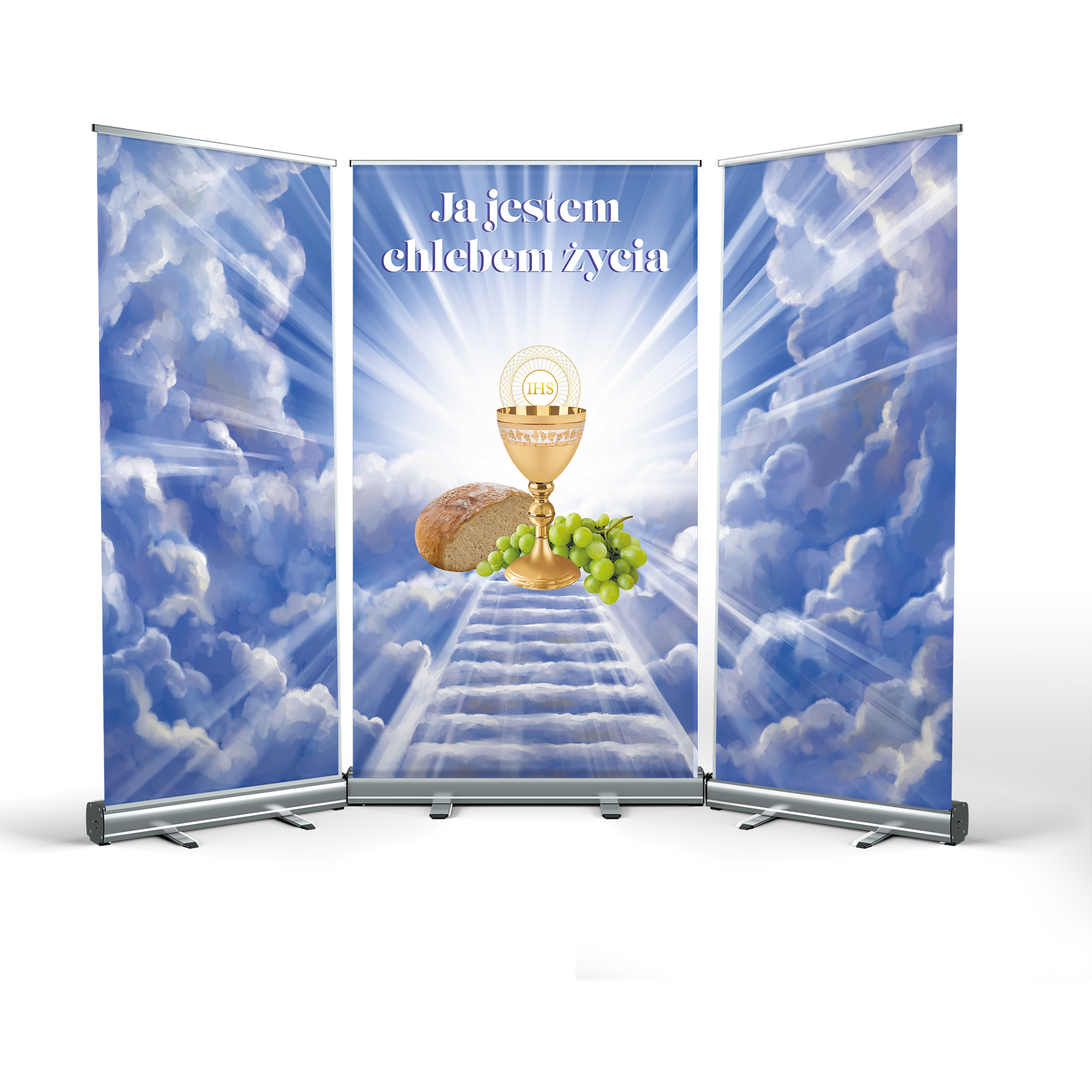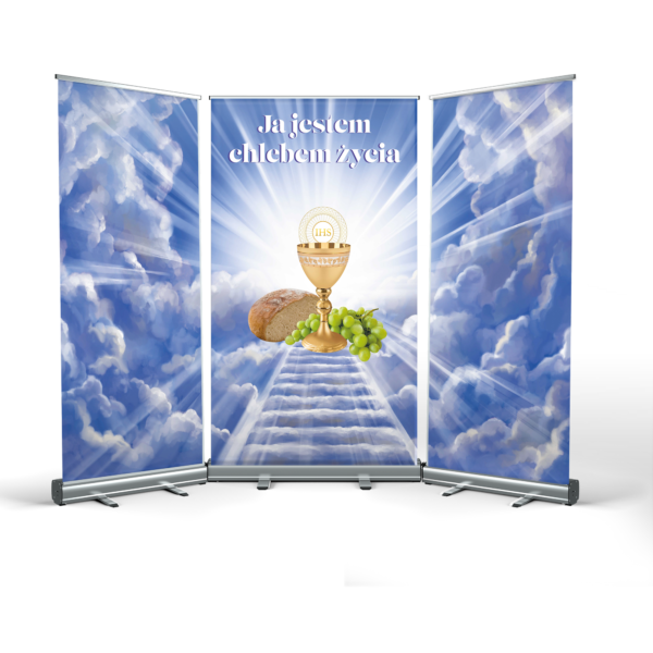 CORPUS CHRISTI ALTAR is a great idea for quickly arranging decorations in any location. The structure is made of durable cassettes, made entirely of anodised aluminium. The mast stabiliser guarantees a secure presentation of the print.