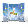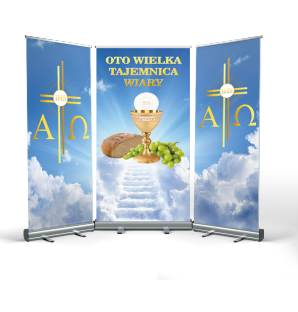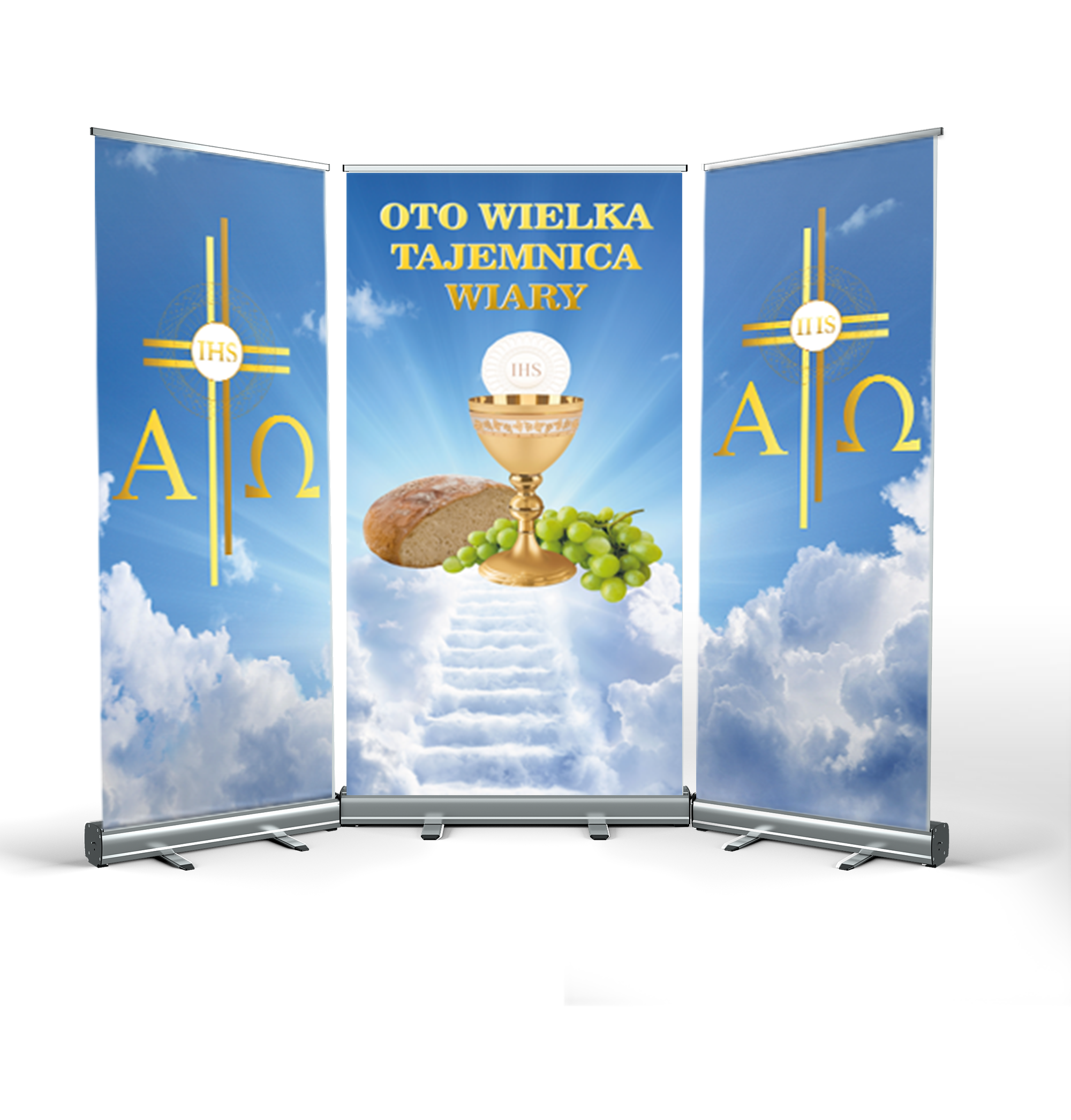 CORPUS CHRISTI ALTAR is a great idea for quickly arranging decorations in any location. The structure is made of durable cassettes, made entirely of anodised aluminium. The mast stabiliser guarantees a secure presentation of the print.