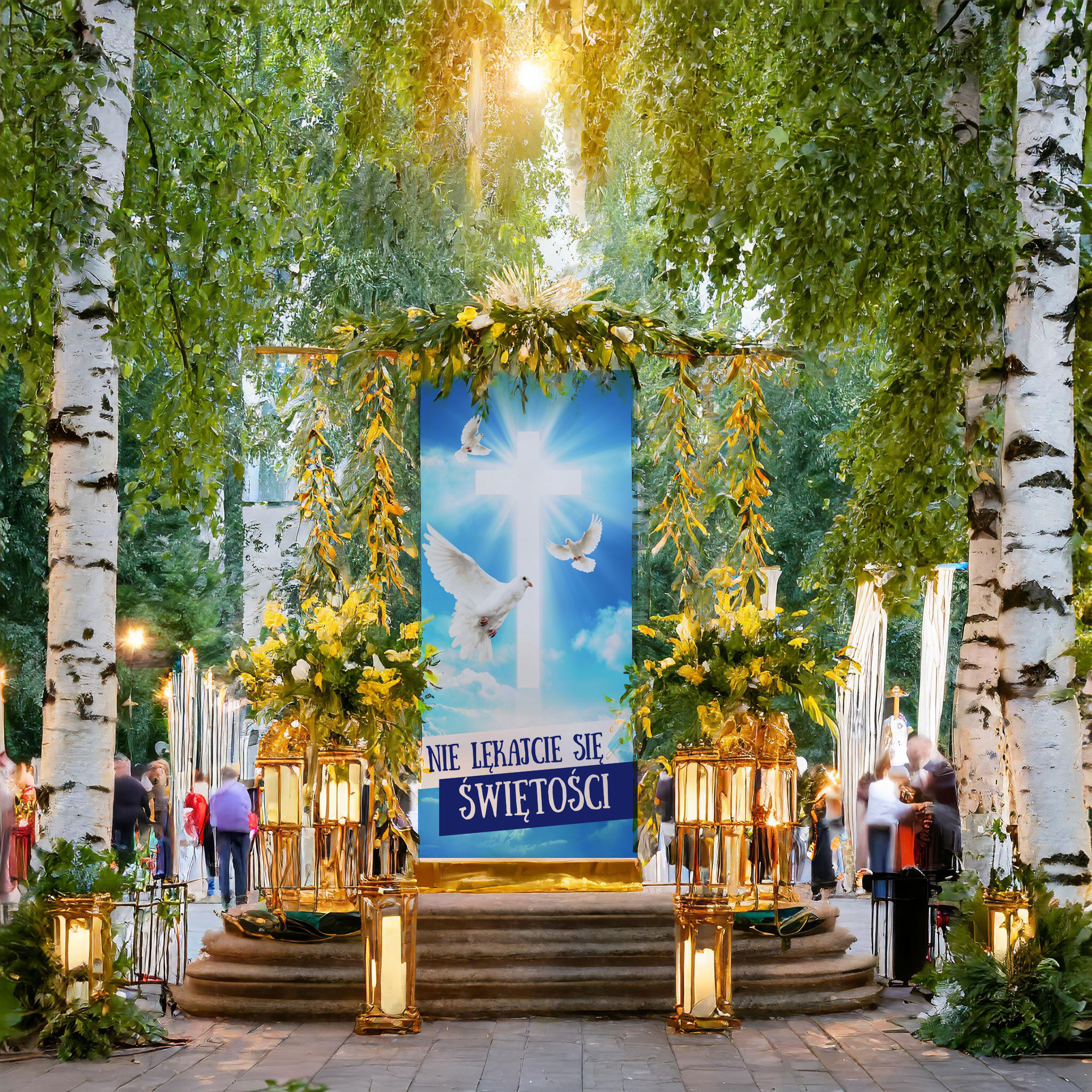 - Easy to hang: The banner has been equipped with special hanging points, making it easy to place anywhere – at home, during a procession or in a church.