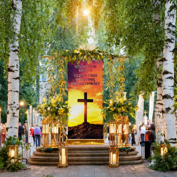 Our banner is not just a product, it is an expression of faith and respect for Christian tradition. With it, you can create a unique atmosphere in your surroundings or church, while expressing your deep convictions and participating in important liturgical moments. We offer images with the lamb, for Corpus Christi, Lent and Easter, for Holy Communion, Advent, depicting the cross of the Lord, Golgotha, the tomb of the Lord, backgrounds for the tomb of Jesus Christ, showing the death on the cross and the ascension.