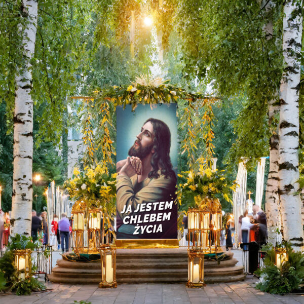 Our banner is not just a product, it is an expression of faith and respect for Christian tradition. With it, you can create a unique atmosphere in your surroundings or church, while expressing your deep convictions and participating in important liturgical moments. We offer images with the lamb, for Corpus Christi, Lent and Easter, for Holy Communion, Advent, depicting the cross of the Lord, Golgotha, the tomb of the Lord, backgrounds for the tomb of Jesus Christ, showing the death on the cross and the ascension.