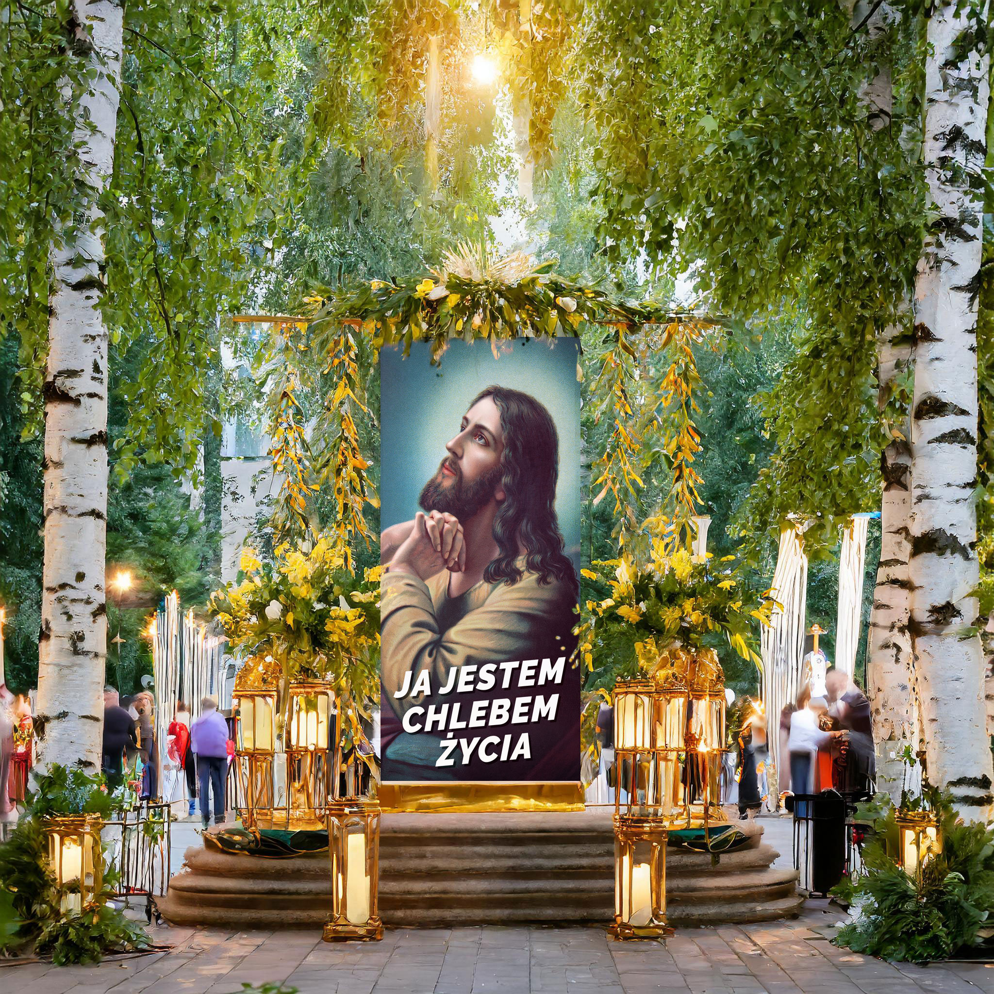 - Artistic image: The celebration of the Most Holy Body and Blood of Christ – the miracle of the transformation of consecrated bread and wine into the Body and Blood of Christ.