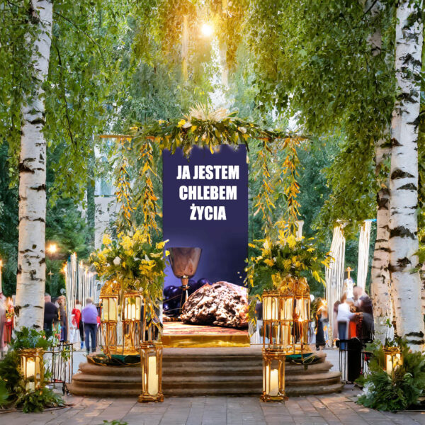 Our banner is not just a product, it is an expression of faith and respect for Christian tradition. With it, you can create a unique atmosphere in your surroundings or church, while expressing your deep convictions and participating in important liturgical moments. We offer images with the lamb, for Corpus Christi, Lent and Easter, for Holy Communion, Advent, depicting the cross of the Lord, Golgotha, the tomb of the Lord, backgrounds for the tomb of Jesus Christ, showing the death on the cross and the ascension.