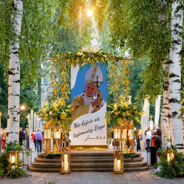 - Easy to hang: The banner has been equipped with special hanging points, making it easy to place anywhere – at home, during a procession or in a church.