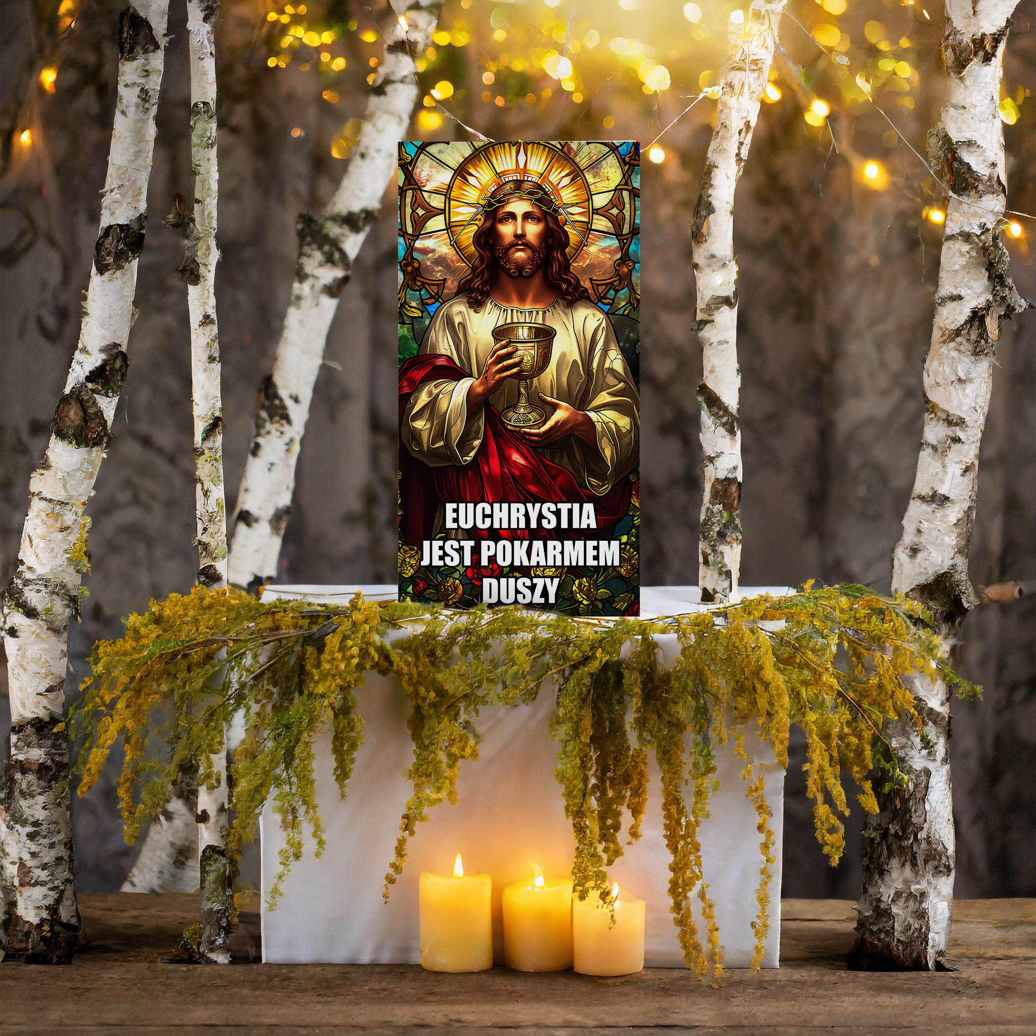 Our banner is not just a product, it is an expression of faith and respect for Christian tradition. With it, you can create a unique atmosphere in your surroundings or church, while expressing your deep convictions and participating in important liturgical moments. We offer images with the lamb, for Corpus Christi, Lent and Easter, for Holy Communion, Advent, depicting the cross of the Lord, Golgotha, the tomb of the Lord, backgrounds for the tomb of Jesus Christ, showing the death on the cross and the ascension.