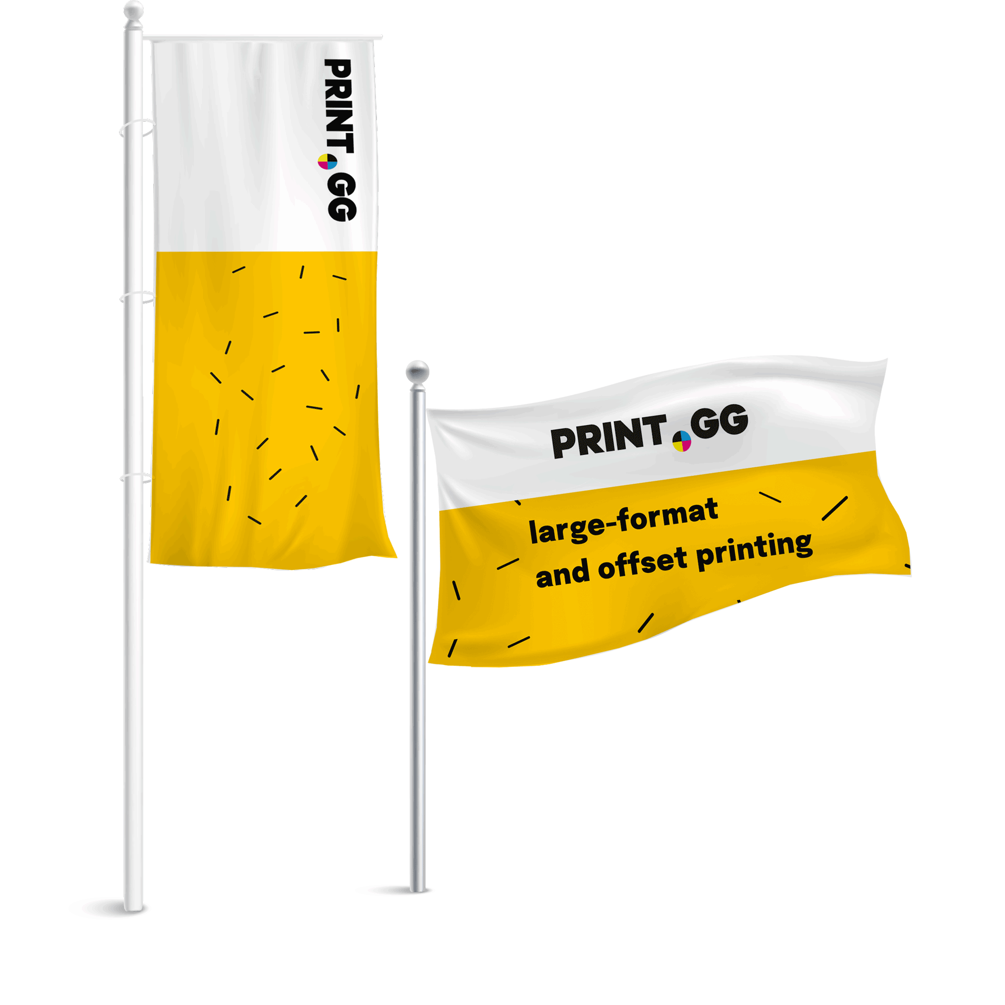 - made of thick 100% polyester flag fabric with a weight of 120 g/m², quick-drying, weather-resistant