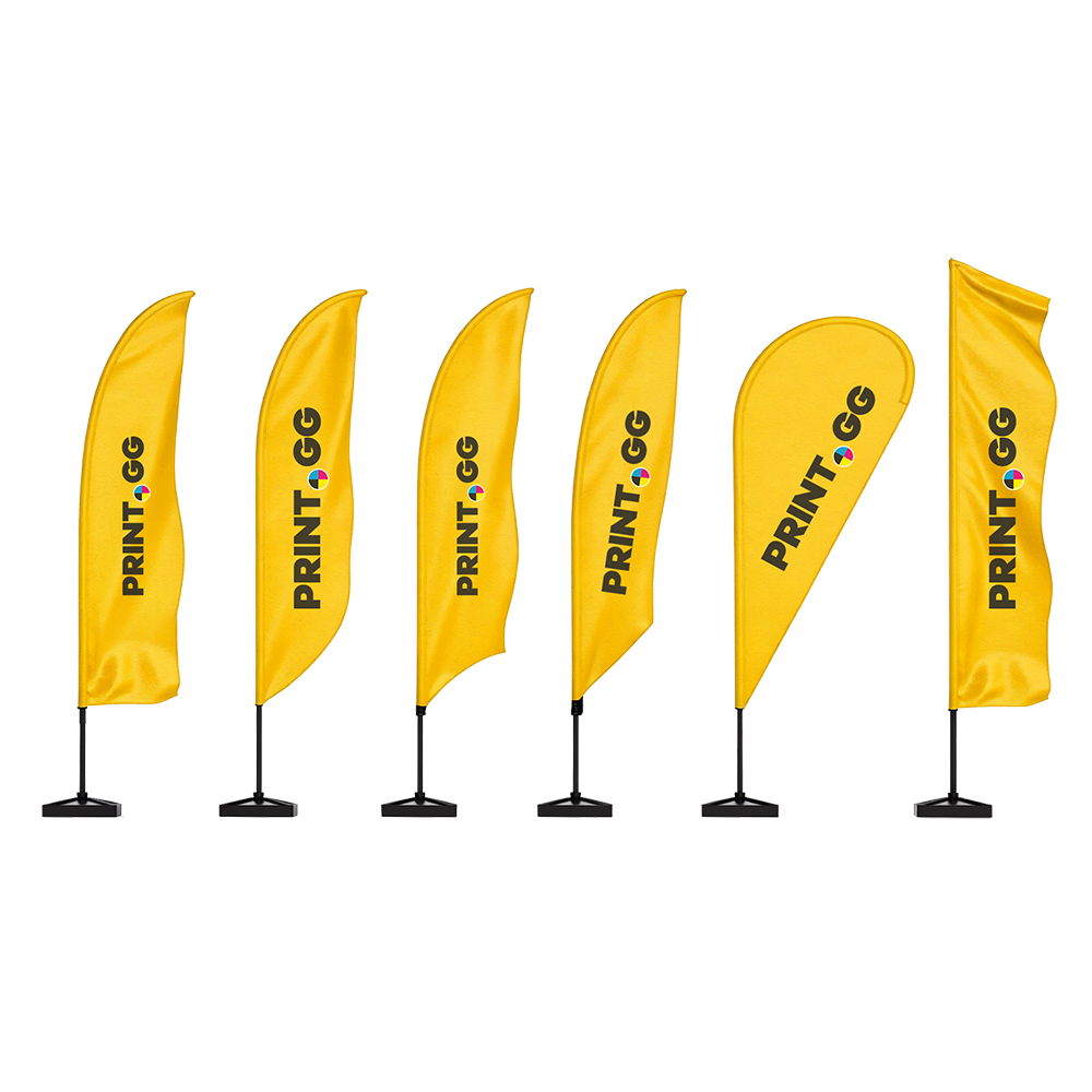 The standard heights of flyer masts are: 260 cm, 310 cm, 380 cm, and 470 cm. This is the height of the flagpole; the flag itself (fabric) is approximately 40 cm lower (this prevents the winder from getting dirty on the ground and ensures it is more visible).