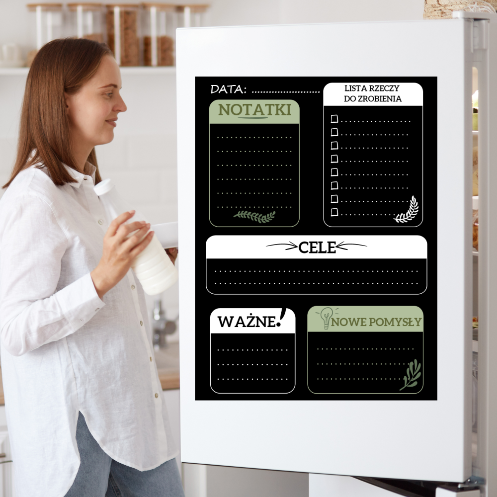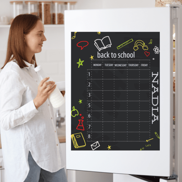The magnetic fridge planner is damage-resistant. You can write on it with dry-erase or chalk markers.