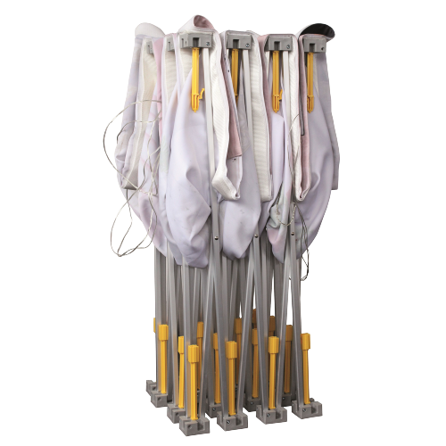 - Easy assembly thanks to yellow clips that tension the structure