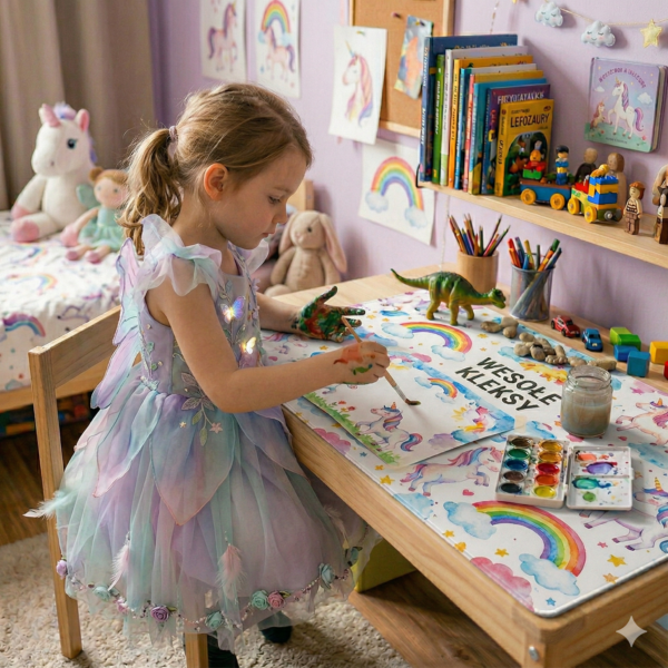 It perfectly protects the surface: The mat is made of high-quality 2 mm thick PVC materials, which provide effective protection against scratches, stains, splashes and other damage to the table surface. This will keep your table looking like new for a long time.