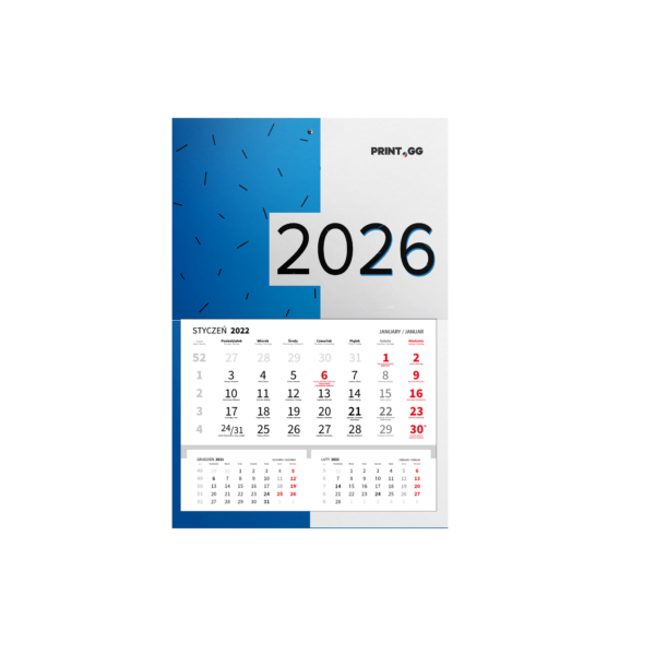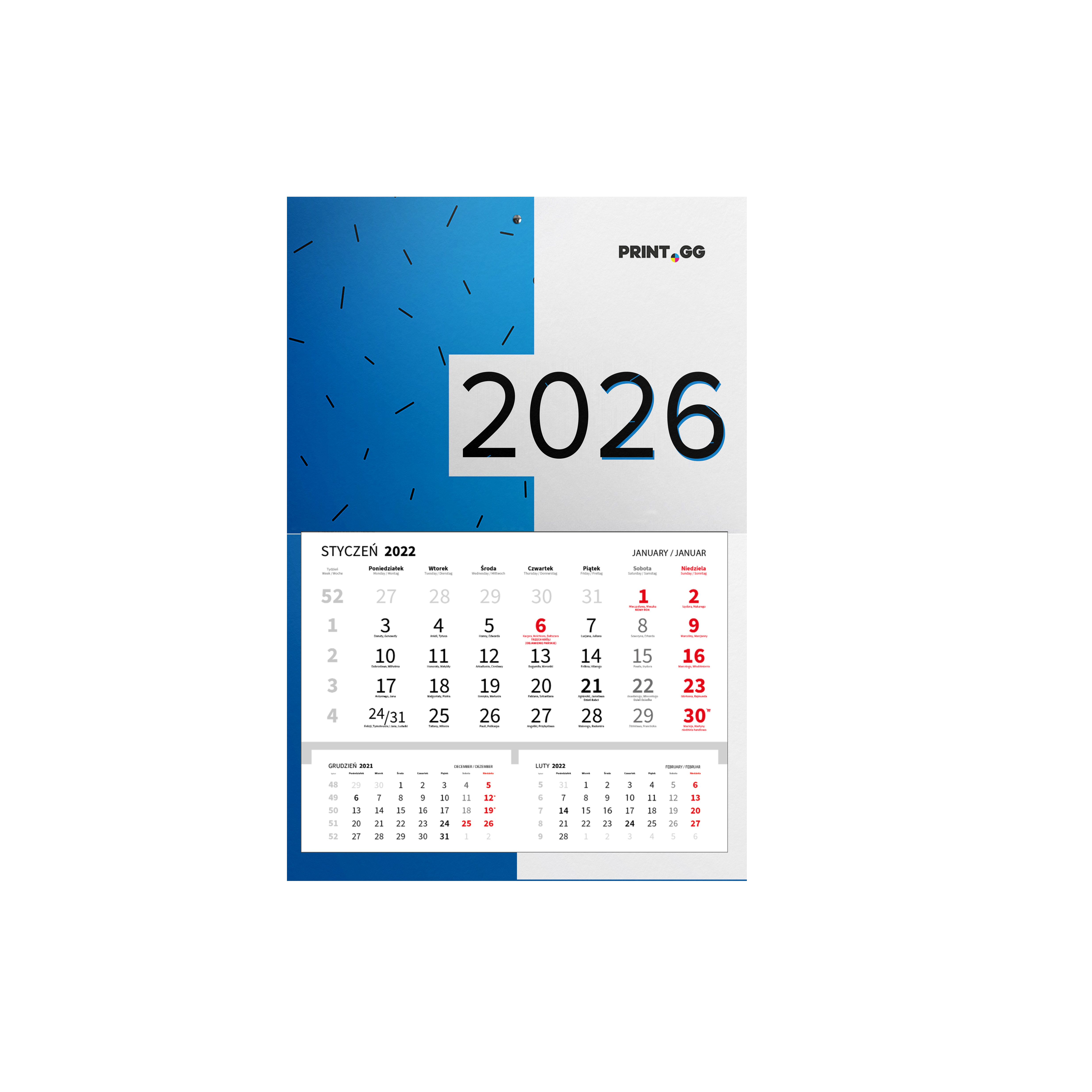 A single-section wall calendar is a simple and highly effective tool for organising your time. Thanks to it, you can see at a glance how your past, present and future tasks have been completed. The product has also become popular due to its large surface area, making it perfect for year-round advertising . It is easy to spot in offices, shops, government offices, and institutions – take advantage of this promotional tool! Stay with your customers for 12 months. Single-section calendars are the perfect gift for contractors, suppliers, employees, and close persons—family and friends.