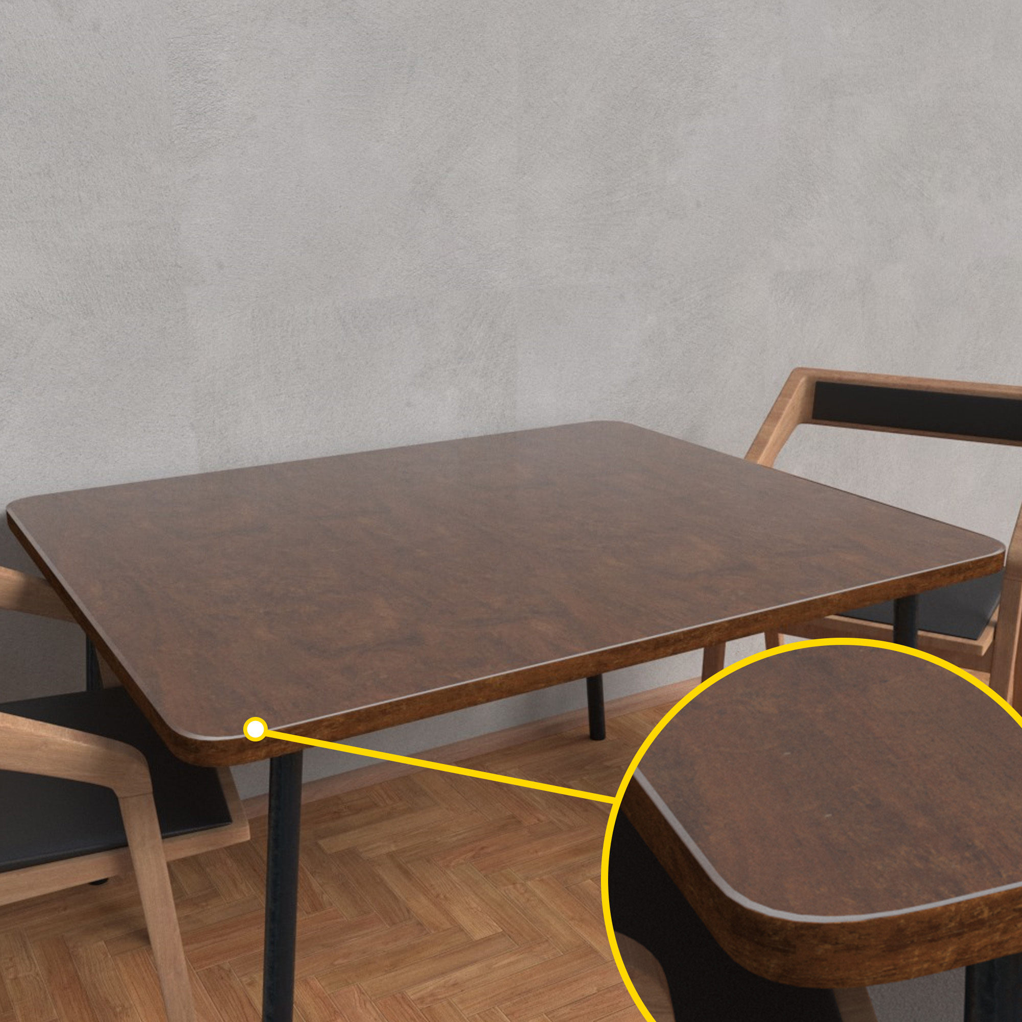 The edges are finished at a 45° angle - The bevelled edges ensure that you can rest your hands comfortably on the table without worrying about discomfort.