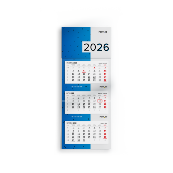 The simplest and most useful tool for organising your time is a three-part wall calendar. All you need to do is take a look to find out the degree of completion of past, current and future tasks. This popular form of year-round advertising has gained popularity thanks to its large surface area, among other things. You will find it on the walls of offices, shops, government buildings, and institutions—take advantage of this! Stay close to your audience for 12 months. Tri-fold calendars are the perfect gift for customers, suppliers, employees and loved ones – family and friends.