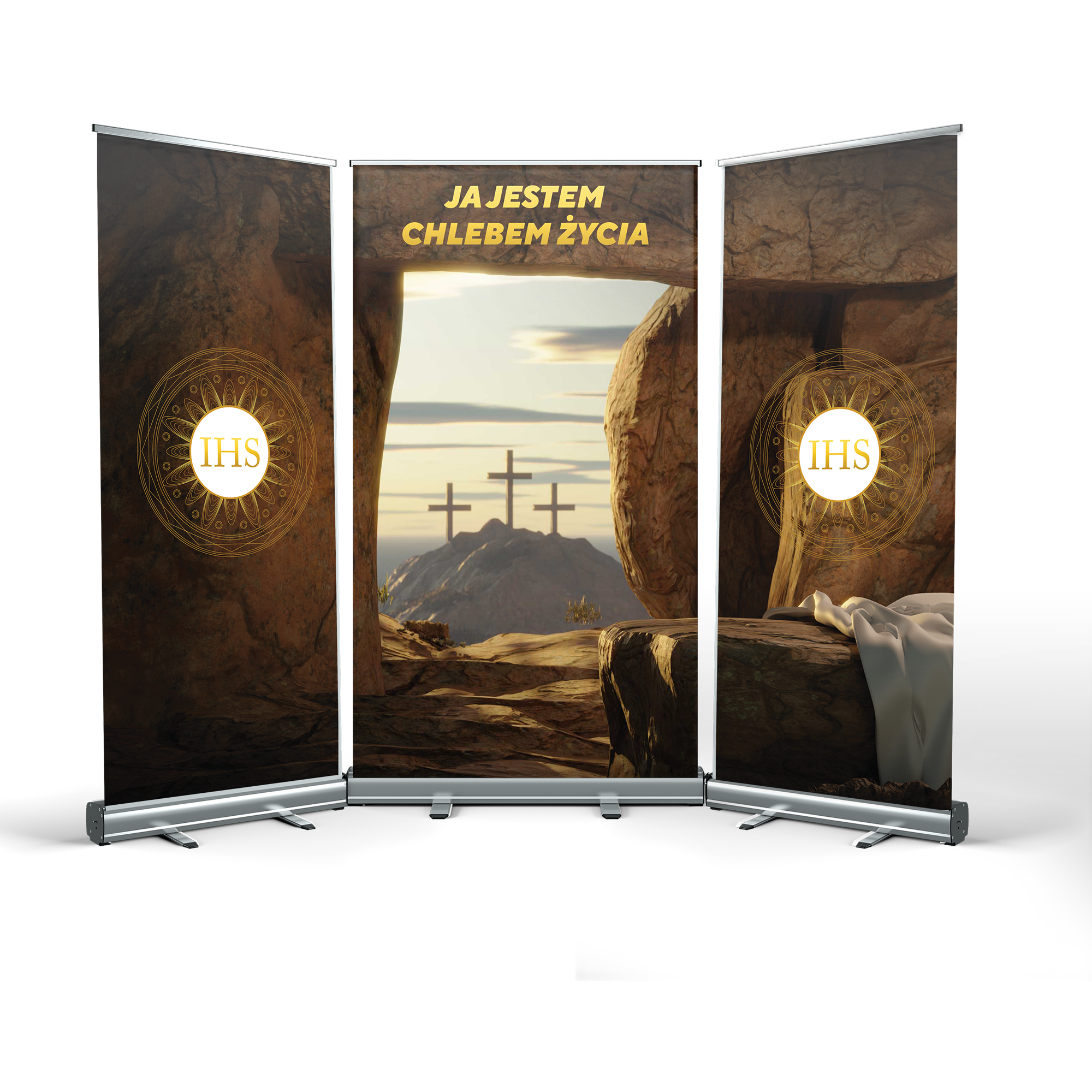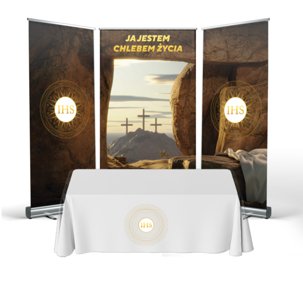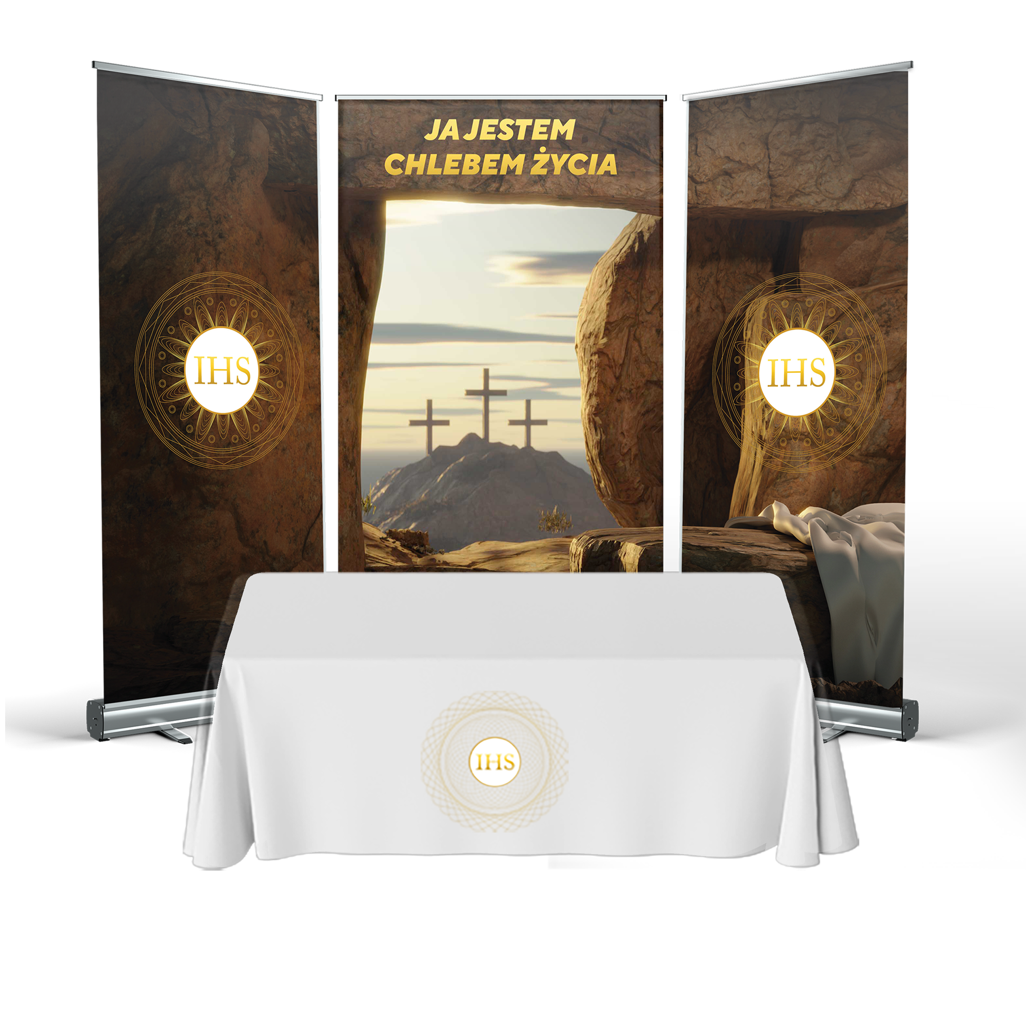 L'AUTEL POUR LA FÊTE-DIEU est une excellente solution pour installer rapidement des décorations dans n'importe quel endroit. La structure est composée de caissons résistants, entièrement fabriqués en aluminium anodisé. Le stabilisateur du mât garantit une présentation sûre de l'impression.