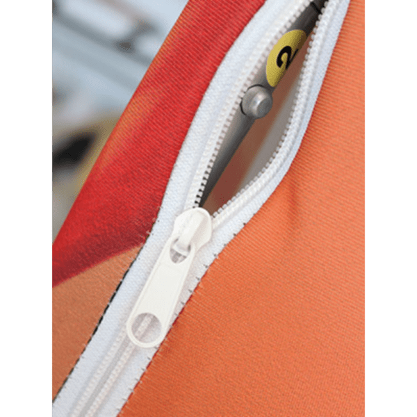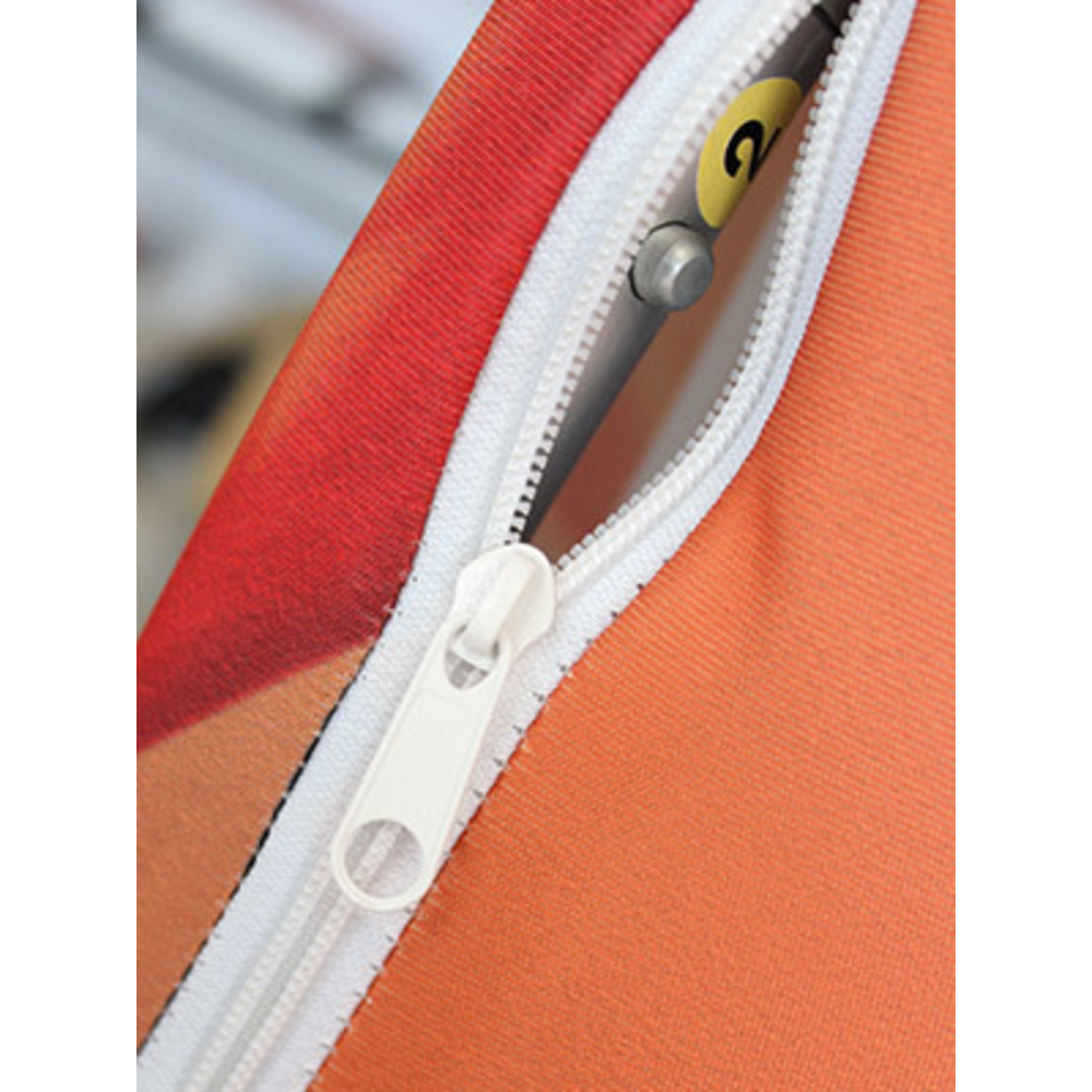 - Visuel résistant et flexible imprimé sur du tissu, fixé sur le système, tendu à l'aide d'une fermeture éclair.