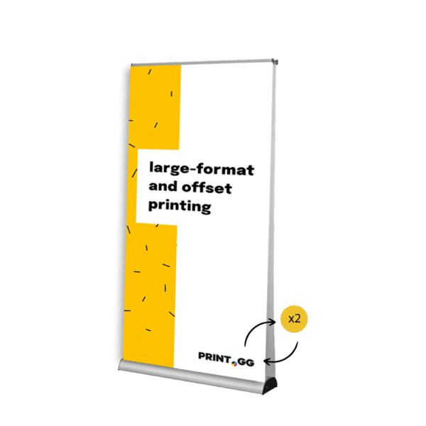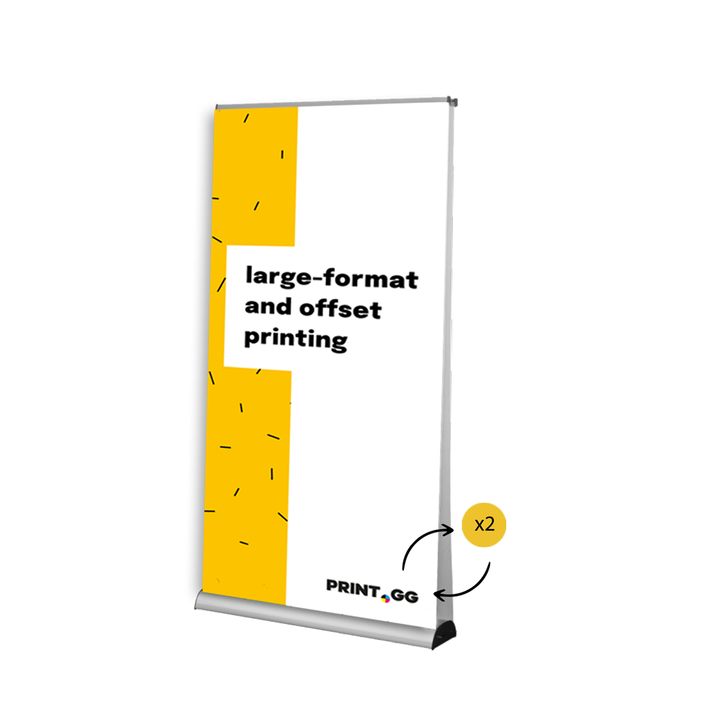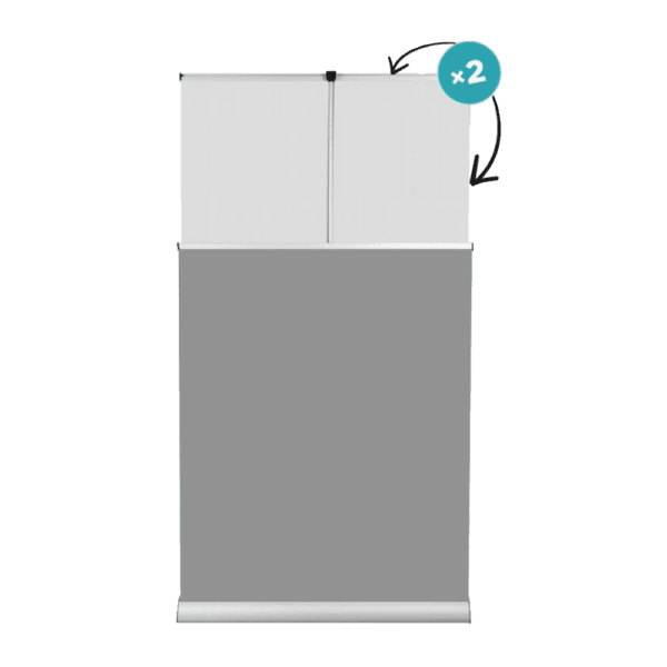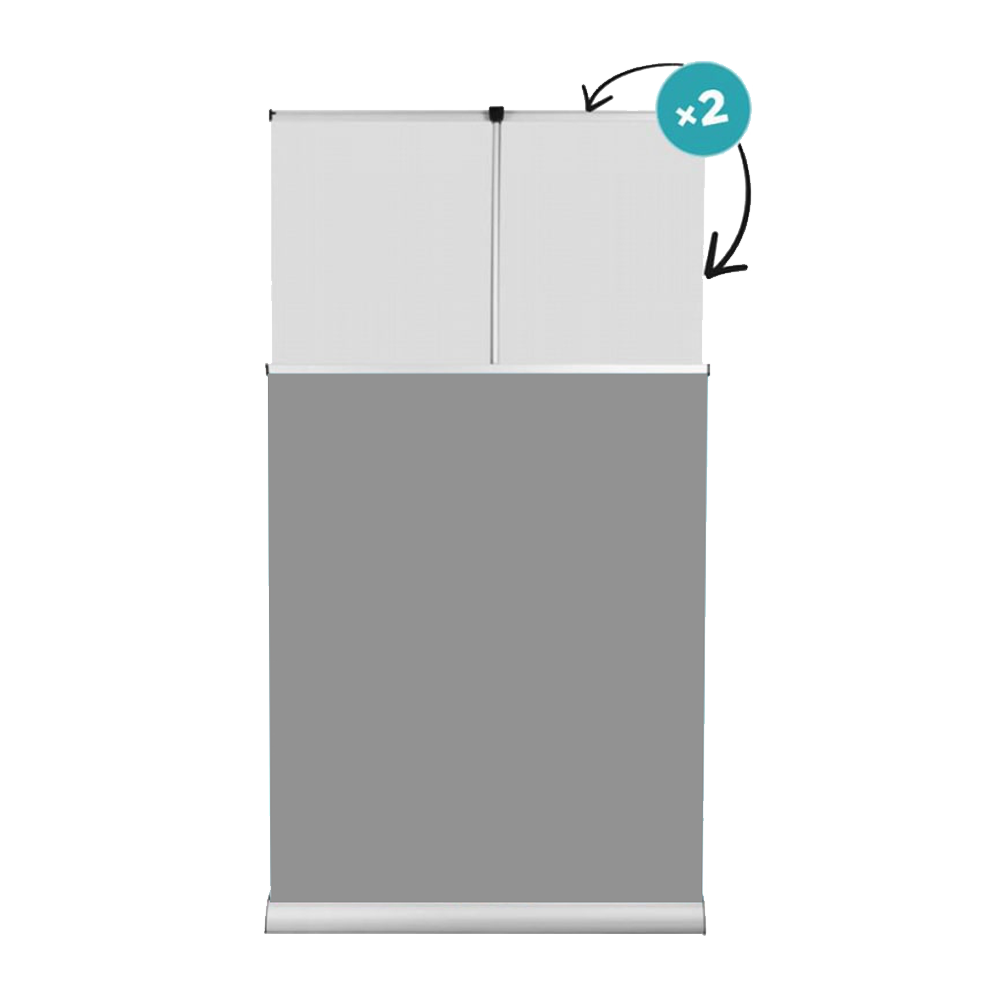Roll-up double face Twin en version argentée avec deux visuels distincts.