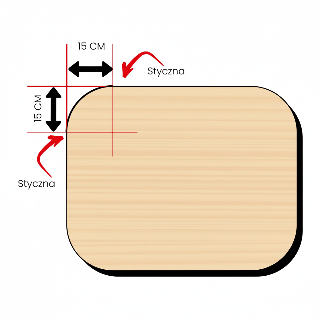 Jeśli chcesz zmierzyć promień narożnika lub potrzebujesz wymiarów ochraniacza stołu, po prostu wykonaj poniższe czynności: