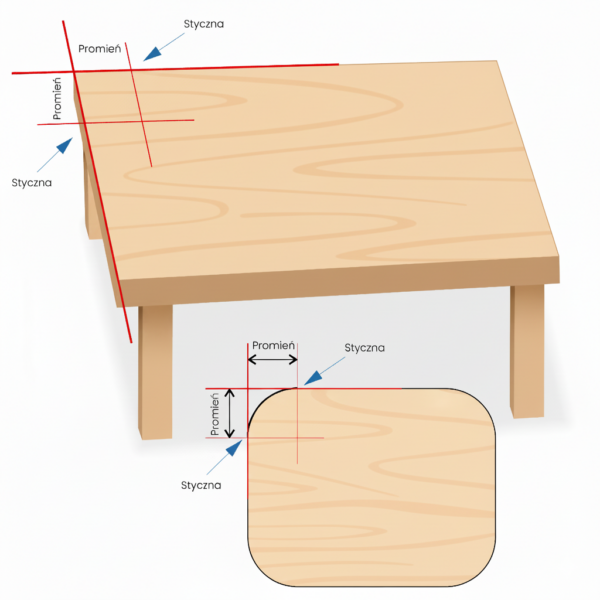 Mierzenie promienia narożników stołu jest naprawdę bardzo proste.