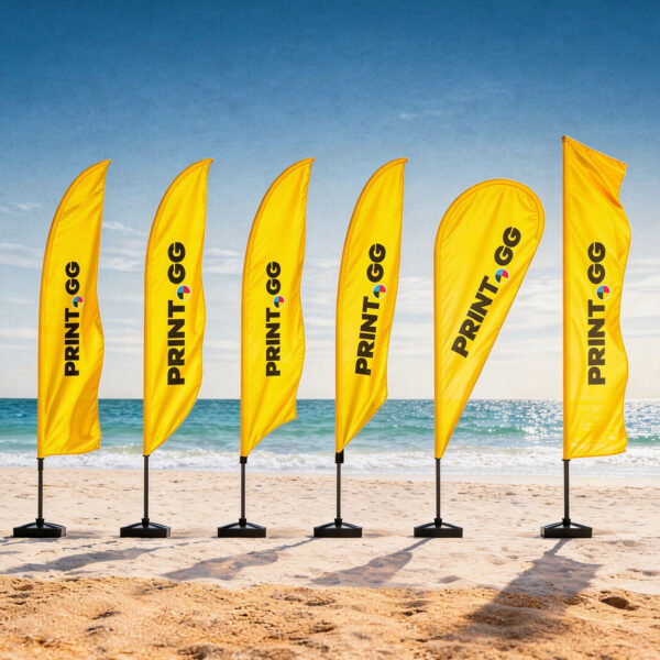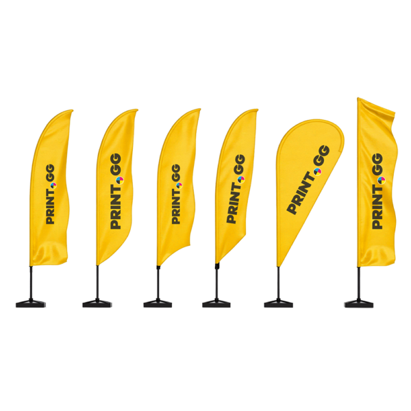 Standardowe wysokości masztów flyer to: 260cm, 310cm, 380cm i 470cm. Jest to wielkość masztu, sama flaga (tkanina) jest niższa o około 40cm (sprawia to, że winder nie brudzi się przy ziemi i jest lepiej wyeksponowany).