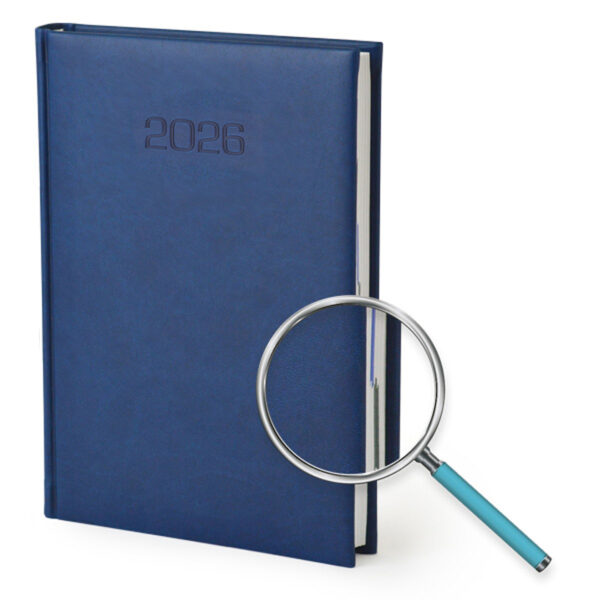 Kalendarz z kalendarium dziennym w oprawie w dwóch kolorach: błękitnej i niebieskiej.