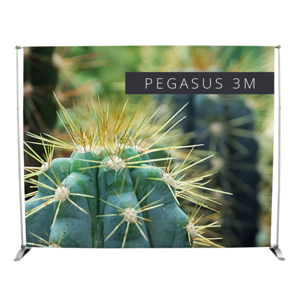 Pegasus ma teraz aż 3 metry szerokości! Możliwość regulacji wysokości i szerokości pozwala na dopasowanie systemu do każdego pomieszczenia. Do tego systemu zaleca się grafikę na materiale tekstylnym.